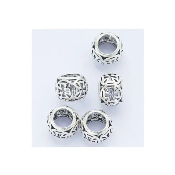 This silver beardbead depicts a templar cross. The bead can be worn in the hair or in the beard.