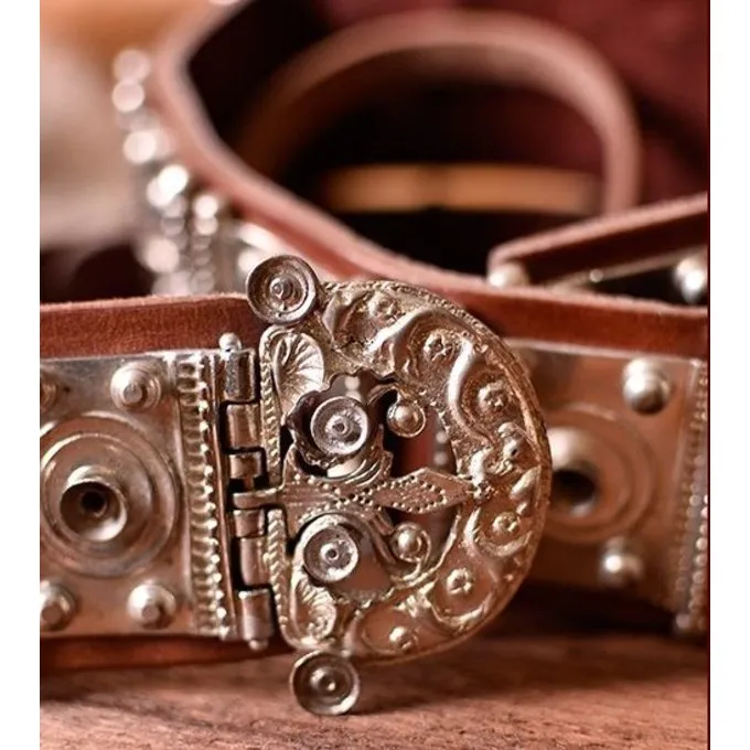 Product details: Length: Hip circumference 97-130 cm / Material: Leather, silvered brass / Based on a historic original: Yes /