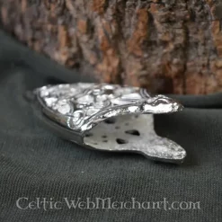 This gothic chandelier is based on a 13th-14th century original. The chandelier is shaped like a griffin. This mythological creature often occurs in the Gothic art style. The griffin is at war with a knight. The knight is equipped with a long hauberk and a nasal helmet. This brass chandelier is completely handmade. It is 19,5 cm long and weighs aprox. 1,8 kg.