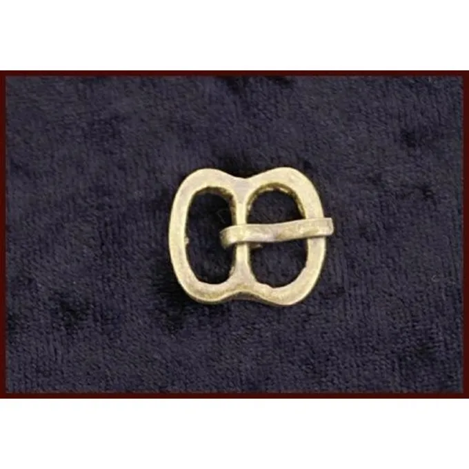 This double buckle is a replica of a late medieval piece found in England. It is made of brass and can be used for belts up to 10 mm wide.