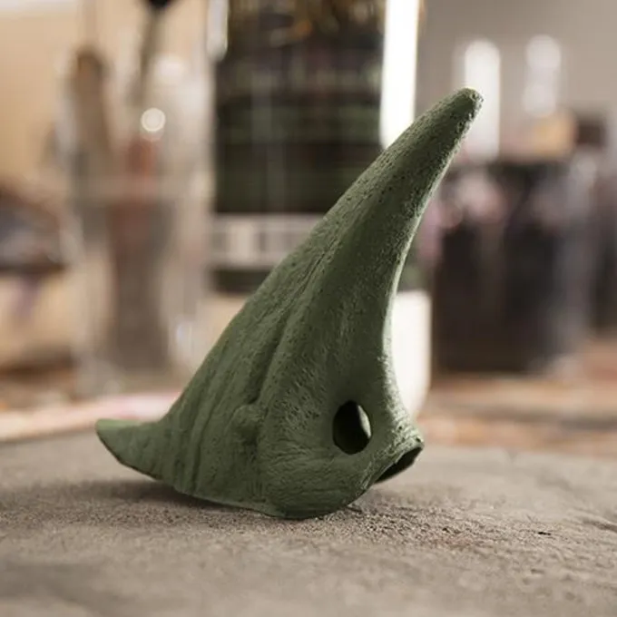This very long latex prosthetic nose with large nostrils gives you the facial expression of a cunning goblin or witch. This nose is made of 100% strong and durable latex and is suitable for reuse. The nose should be maintained with silicone spray for years of use. It comes in green, but if your character is not green you can paint the nose in a different color.