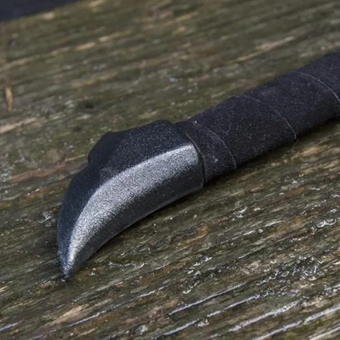 The inhabitants of the city shudder at hearing your name. At night you sneak through alleys and secret tunnels, then you strike relentlessly. This LARP sword is perfect for evil assassins. The sword has a cruel and frightening appearance, something that your victim does not with to encounter. It also looks frequently used because of the missing chips, which will make your enemy even more frightened if he comes face to face with this seasoned assassin. This LARP sword is comfortable to hold in the hand and has a leather grip.