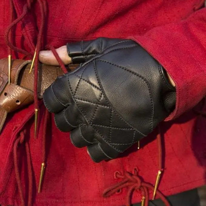 These practical fingerless gloves are made of high quality vegetable tanned leather. Do you need protection or heating of the hands, but simultaneously a maximum flexibility of the hands and fingers? Then these gloves are a perfect match. The gloves have hand-stitched seams, which makes the material more durable and less likely to tear or damage. Around the wrist is a buckle to fasten the glove. These gloves are a great accessory for any costume.