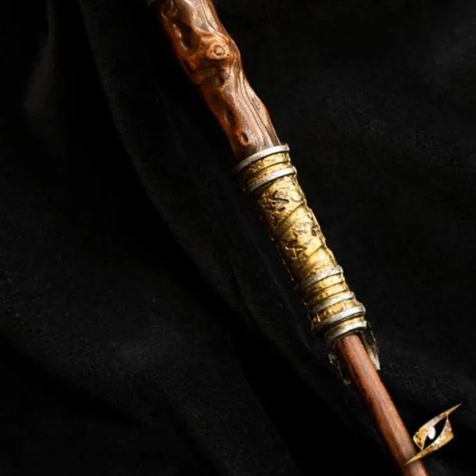 This wand is designed lifelike so that it appears to be made of wood with rooster claws on the grip holding a colored gem. The grip also has a silver-colored band with rune symbols for extra power with your magic. The magic wand is made of wood and has a polyurethane foam grip. You can separate the grip from the wand and put it on other Epic Armoury wands, for a better customization and replacement of broken tips. This wand required little maintenance and is perfect for LARP or Cosplay of Harry Potter, Fantastic Beasts and other magical worlds.