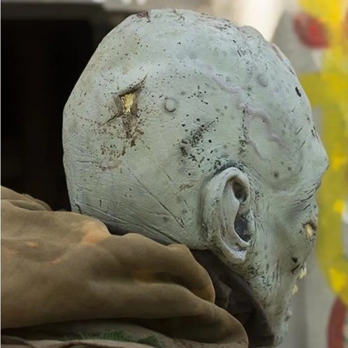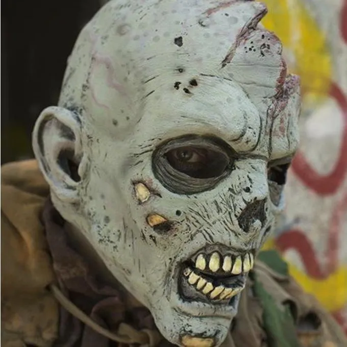 This lifelike zombie mask is inspired by the traditional zombie look. The mask can easily be combined with other latex items (colored contact lenses and teeth are not included in delivery). This mask is high quality and suitable for frequent and durable use. It is made of 100% latex. The mask can be maintained with maintenance silicone. It is suitable for a head circumference of approx. 59 cm. This Zombie mask has artificial hair.