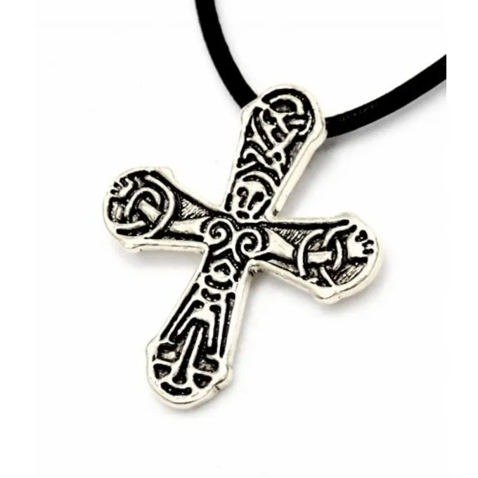 This Viking cross is a replica of an 11th-12th century reliquary found in Gatebo, Sweden. Christ is depicted on the cross. The cross is made in the Urnes style.