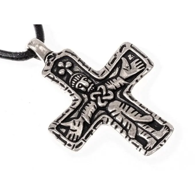 This piece of jewelry is a replica of a Viking cross found on the island of Gotland in Sweden. It was excavated in the Viking Temple of Sanda, this temple was later reused as a church.