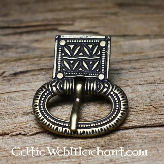 This belt buckle is based on 4th century originals excavated in Germany and France. Belt buckles like this were worn by the Germanic tribes and the Roman auxiliae.