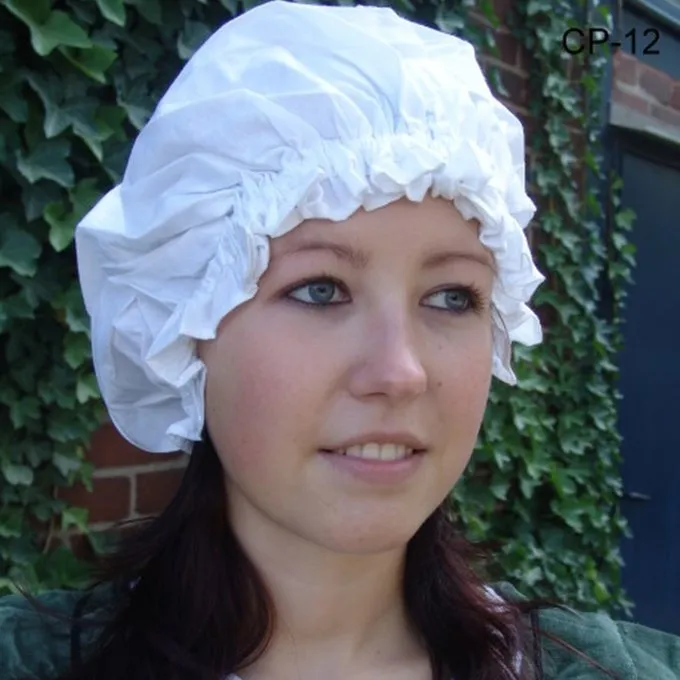 A stylish cotton cap based on 17th century Dutch paintings. Caps like this were worn all over Europe until the 18th century. Besides being a fashion item, these caps made sure that the hair of a woman could not hinder her daily business. This cap is available in the colors black, red, green, natural and white.