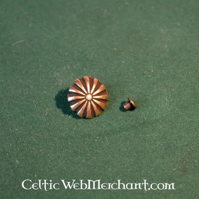 This belt fitting is sold per set of 5 pieces. It is made of brass or silvered brass and has a diameter of 1,8 cm