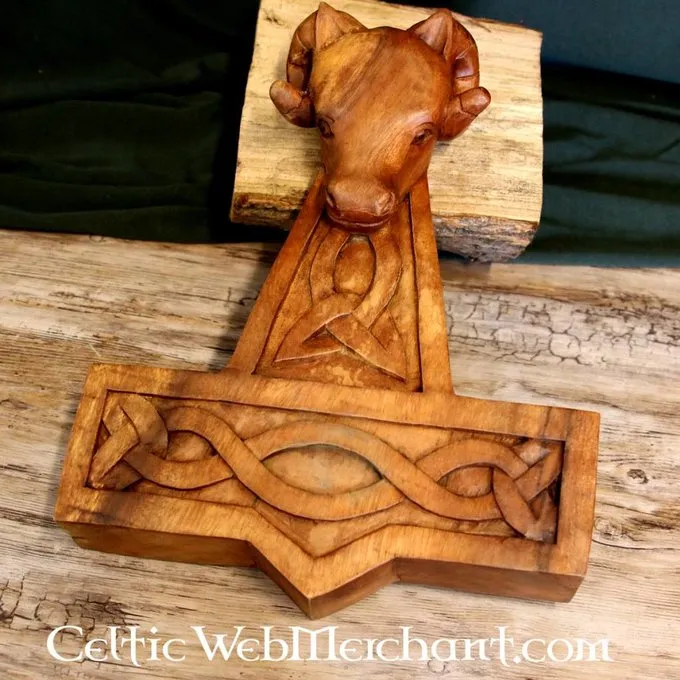This woodcarving is completely handmade. The hammer has a rams head on the upper side like several other historical originals.
