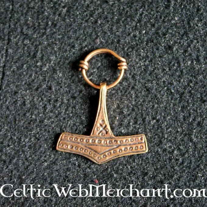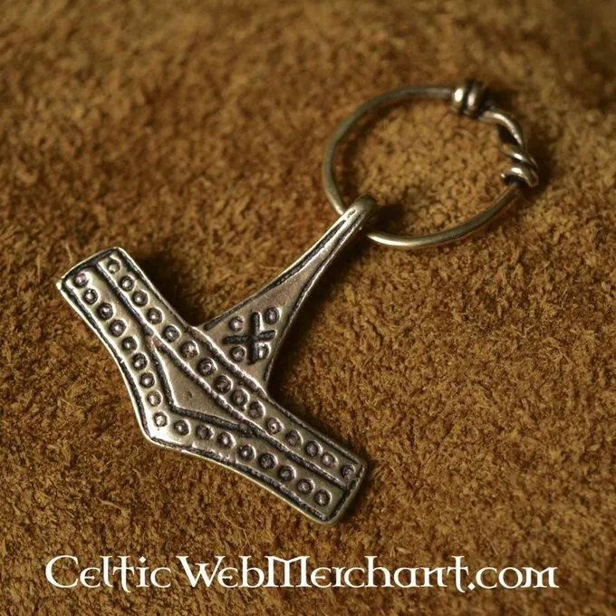 This Thors hammer is a replica of a silver original found in Rømersdal. The hammer is the symbol for Thor, the god of thunder. He was seen as the highest god of the Vikings by mainly peasants and warriors. According to the mythology Thors hammer was forged by the dwarf Brokk and when it was thrown it never missed its target.