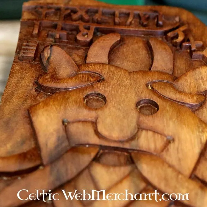 The middle of this decoration shows a styled Odin, the upper god of the Vikings. Alongside the upper edge runes are engraved.