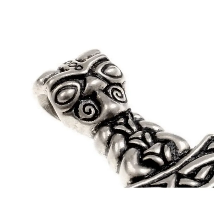 This Thors hammer is inspired by the mythological wolf Fenrir. The Thorshamer is decorated with knot motifs that stand for infinity and timelessness. Knot motifs like these are used in various Viking art styles.