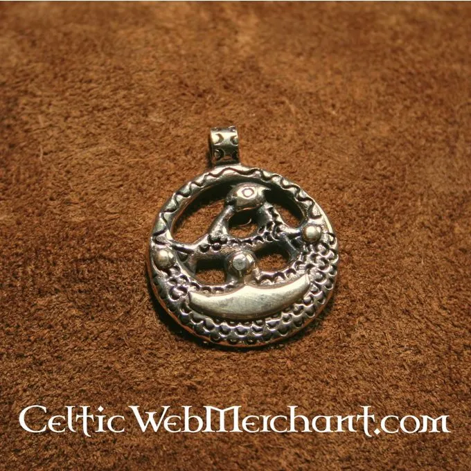This jewel is a replica of an original excavated in Tuna, Uppland. Archaeologists presume that this amulet has the shape of a stylized lion head. It emphasizes the trade contacts between Scandinavia and Constantinople.