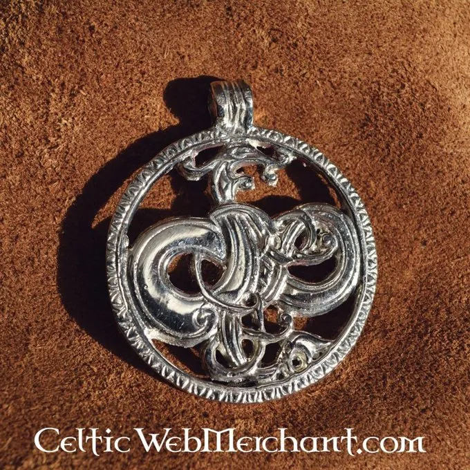 This amulet is a depiction of the Midgard snake, a snake that encircled the world according to the Viking mythology. It is made in the Urnes style.