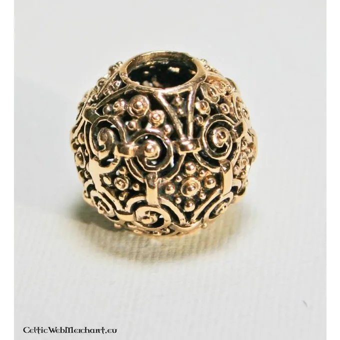 This bead is made after a 9th century original excavated in Gotland. Bronze, silver and gold beads were popular among all people in Europe during the early Middle Ages.