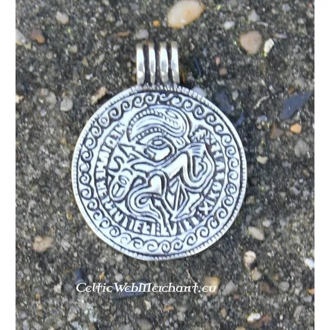 The original jewel is found in Seeland (Denmark) and is nowadays exhibited at the Danish National Museum. The jewel is an amulet that was presumably used for religious purposes. Inscription: ?I am called Harihua, knowing misfortune I bring luck.? This silver replica amulet has a length of 2,5 cm and weighs 64 g.