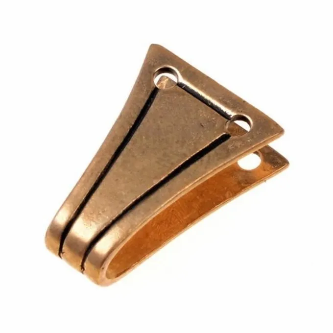 This decoration is based on a 9th-10th century original excavated in the Viking town of Birka. The decoration was used to make the leather edge of a seax or knife scabbard fittinng. Often several of these decorations were used alongside each other.